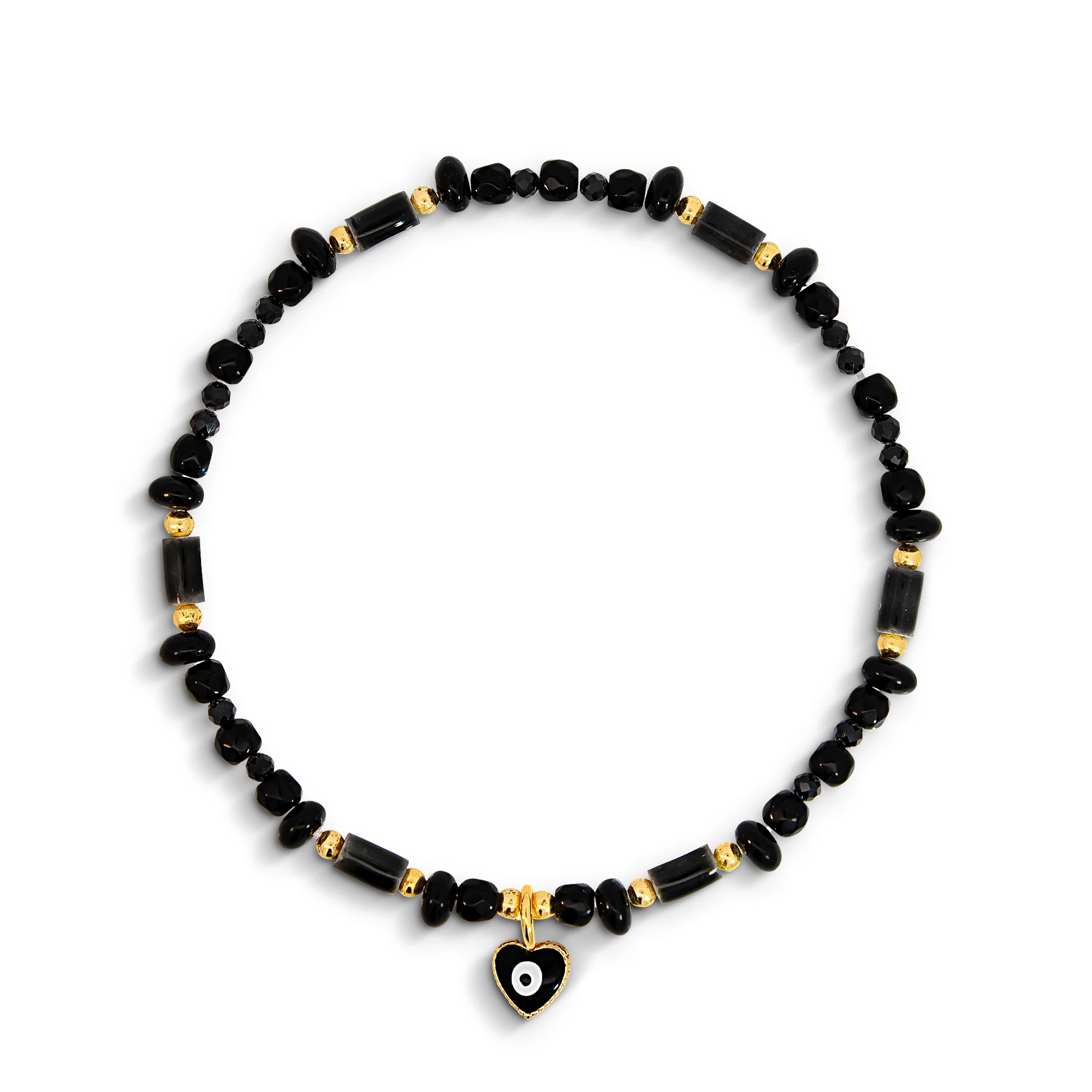 Radiate relaxation with this fun beaded bracelet set. Finished with evil eye beads and heart charms for warding off evil spirits, these carefree bracelets are crafted with black agate for protection and grounding, and jade for serenity and nurturing. One bracelet features adjustable tassel ends for a playful feel, while the other is elasticated. Slip yours on with more Xuxa pieces in your collection to create a personalised stack that shows off your fun side.